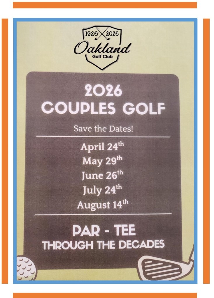 The Oakland Golf Club began as a cow pasture in 1922 and in 1926 the golf course formally opened for play. Over the years it has evolved into a beautiful 18-hole layout. Join us on August 8, 2026 to celebrate our centennial…..100 years of golf in Oakland!